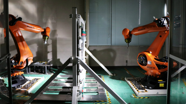 日產(chǎn)“雙面無模成型(Dual-sided dieless forming)”技術(shù),通過工業(yè)機器人靈活便捷地加工生產(chǎn)小批量需求的汽車零部件,可為更多消費者提供已停產(chǎn)車型的售后服務(wù)
