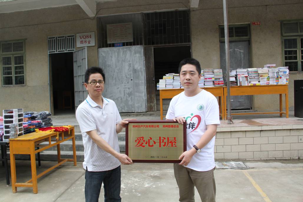 2014年3月28日,鄭州日產2014“關懷行萬里?贈書大接力”活動走進了廣東省肇慶市廣寧縣金山小學。鄭州日產攜手愛心車主及社會愛心人士,為山區孩子們送去了價值5萬元的教育物資及兒童讀物,并捐建了由鄭州日產冠名的“愛心書屋”。鄭州日產CDV車型NISSAN NV200和東風帥客車隊滿載愛心物資,為活動保駕護航。