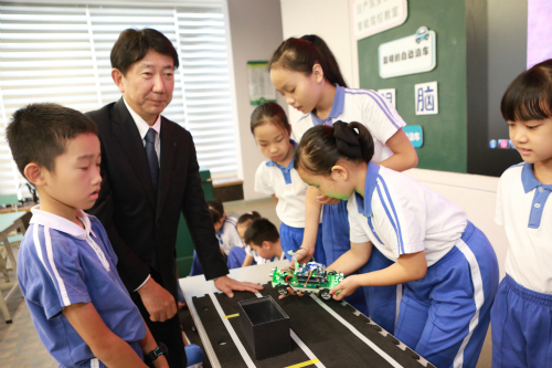 (2020年11月20日,深圳)由日產(中國)投資有限公司創立的公益項目“日產筑夢課堂”的全新課程——“智能駕控教室”昨日在深圳市南山區的北京師范大學南山附屬學校舉行開課儀式。(中國)北京市聯合國教科文組織協會北京協會副主席杜平女士、日產(中國)投資有限公司執行副總經理鈴木昭壽(Akihisa Suzuki)先生,深圳南山區教育局的有關領導以及學校代表出席了本次活動。